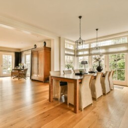 Solid wood flooring is made from a single piece of wood and kiln-dried to remove moisture, making it a durable and long-lasting option. It’s best suited for wood subfloors and areas with low moisture. Unlike engineered options, solid hardwood can be sanded and refinished multiple times, extending its lifespan significantly.