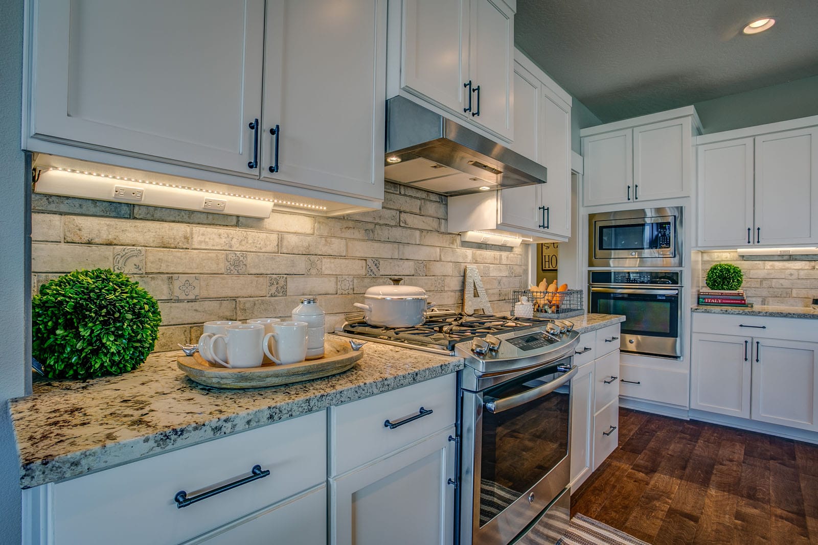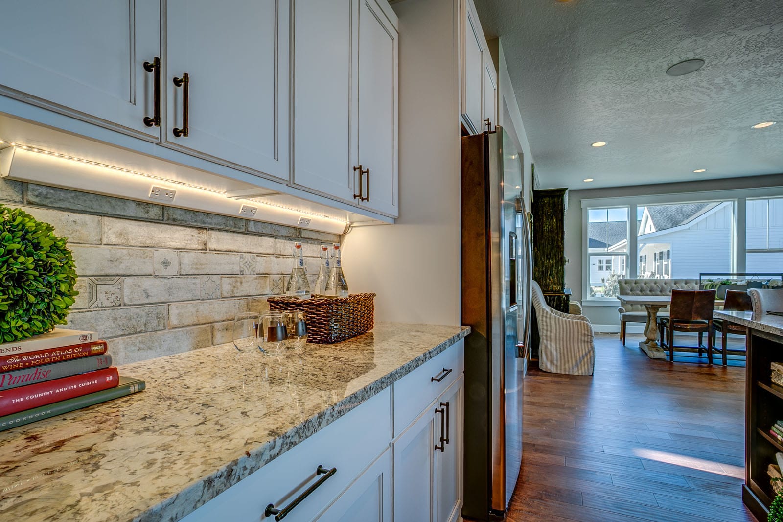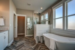 A 2016 Parade of Homes winner, The Hearthside is a gorgeous and inviting country home that combines the relaxing aesthetics of nature with the modern amenities of today. From the reclaimed wood-looking porcelain tile planks in a unique herringbone pattern to the combination of decorative and simple tiles in the kitchen back-splash, you’ll find harmony and style! Boasting contrasting color schemes while keeping the majority of the design light and airy, this shabby chic retreat is a wonderful blend of style.