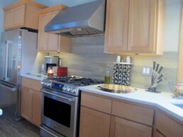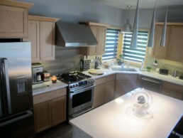 Designed to reflect the homeowner’s style, this cozy Mill River home has a swanky, modern interior. With the use of white, grey, taupe and the added element of stainless steel, this modern design brings an urban setting to the craftsman exterior. Grey wire brushed laminate floors spread throughout the main floor and designer wood plank tiles are expanded around the backsplash of the kitchen. The fireplace features stainless steel tiles and a low profile flame adds just the right amount of warmth. Upstairs features three bedrooms and two additional bathrooms.